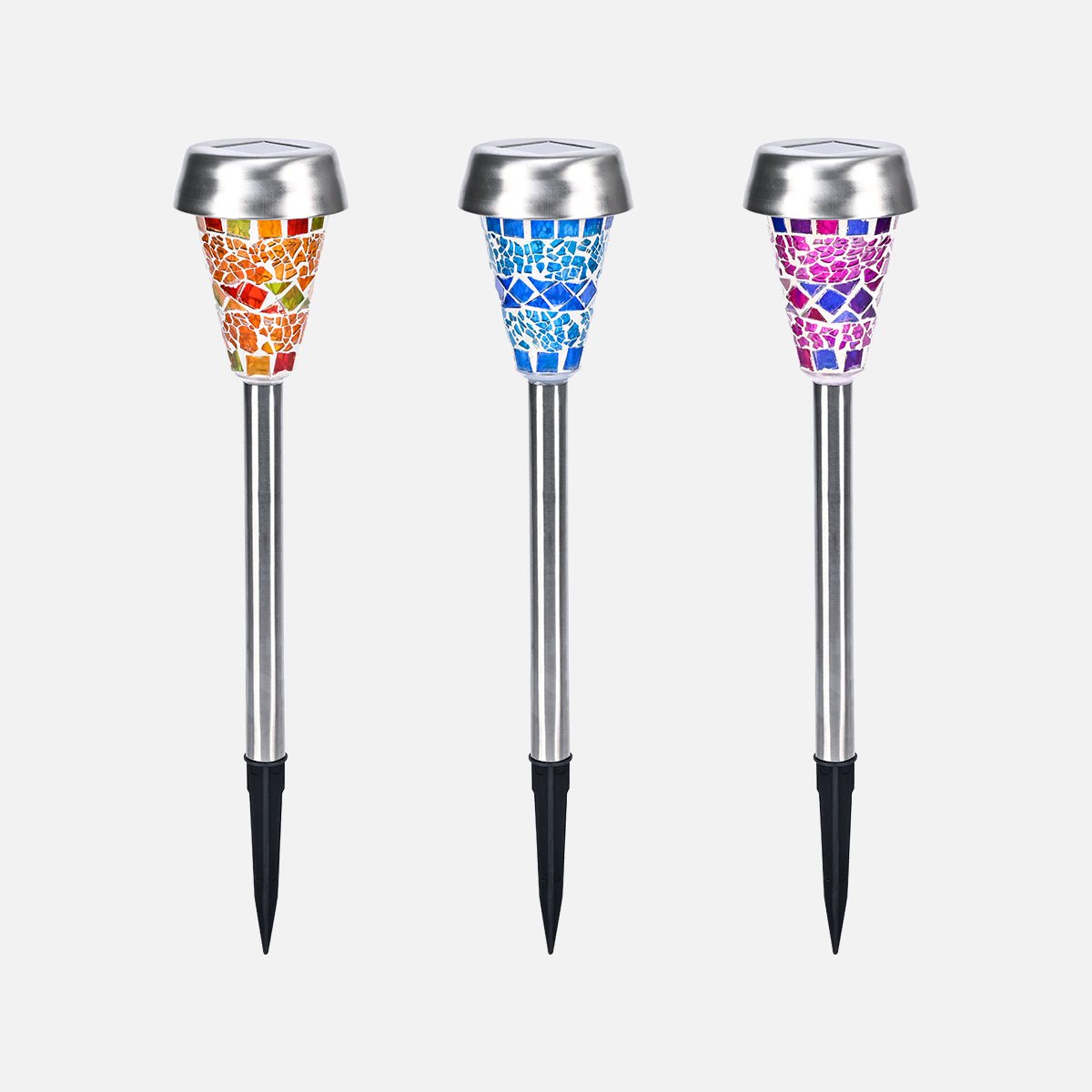 Colorful Solar Crackle Glass Flame Lights Set (3 Pack)