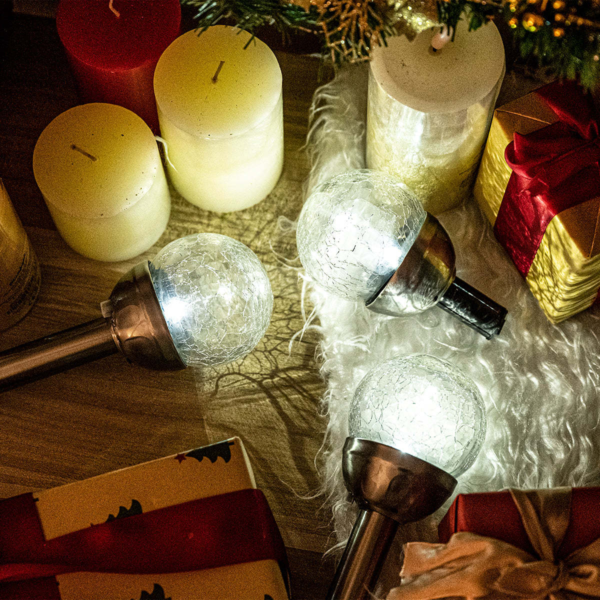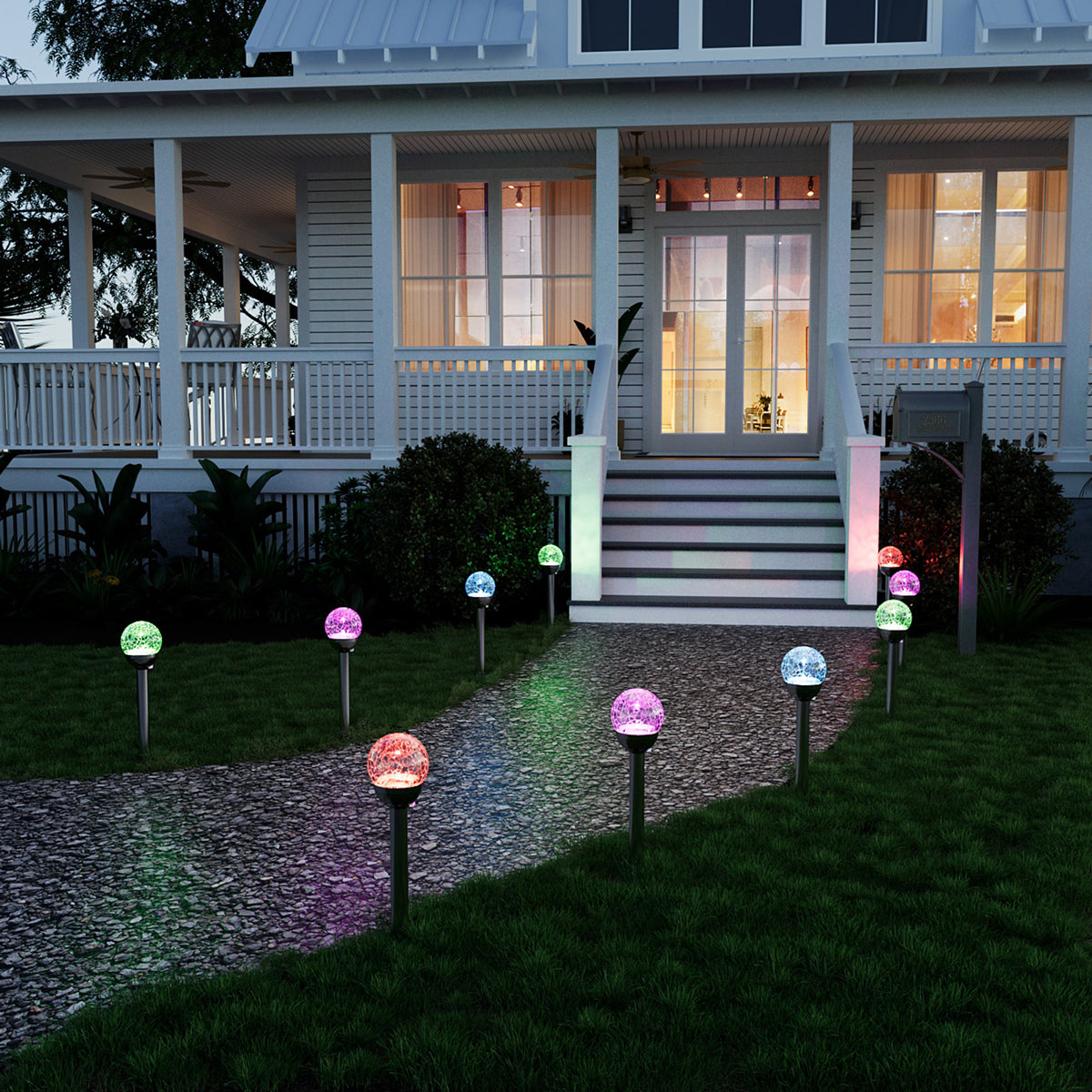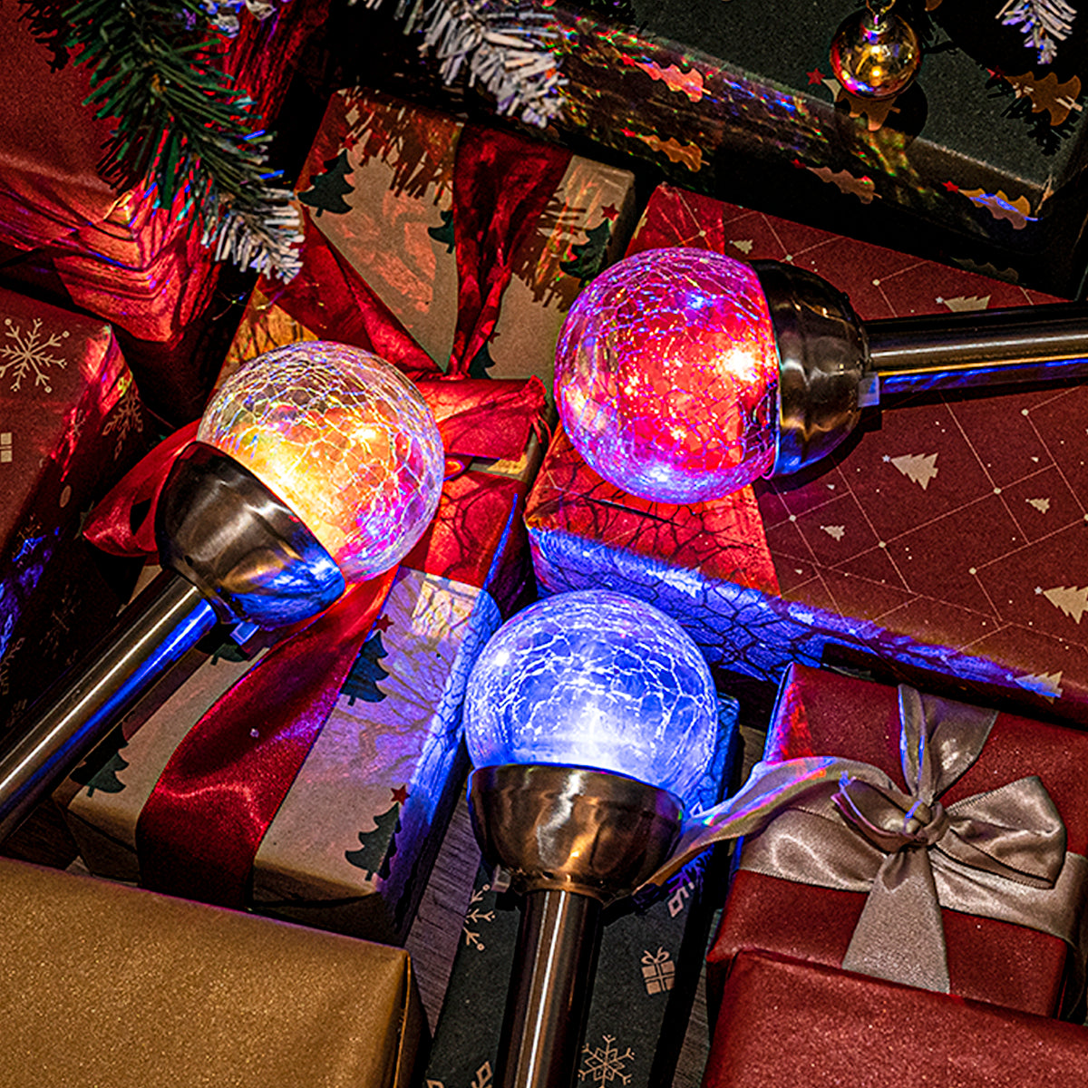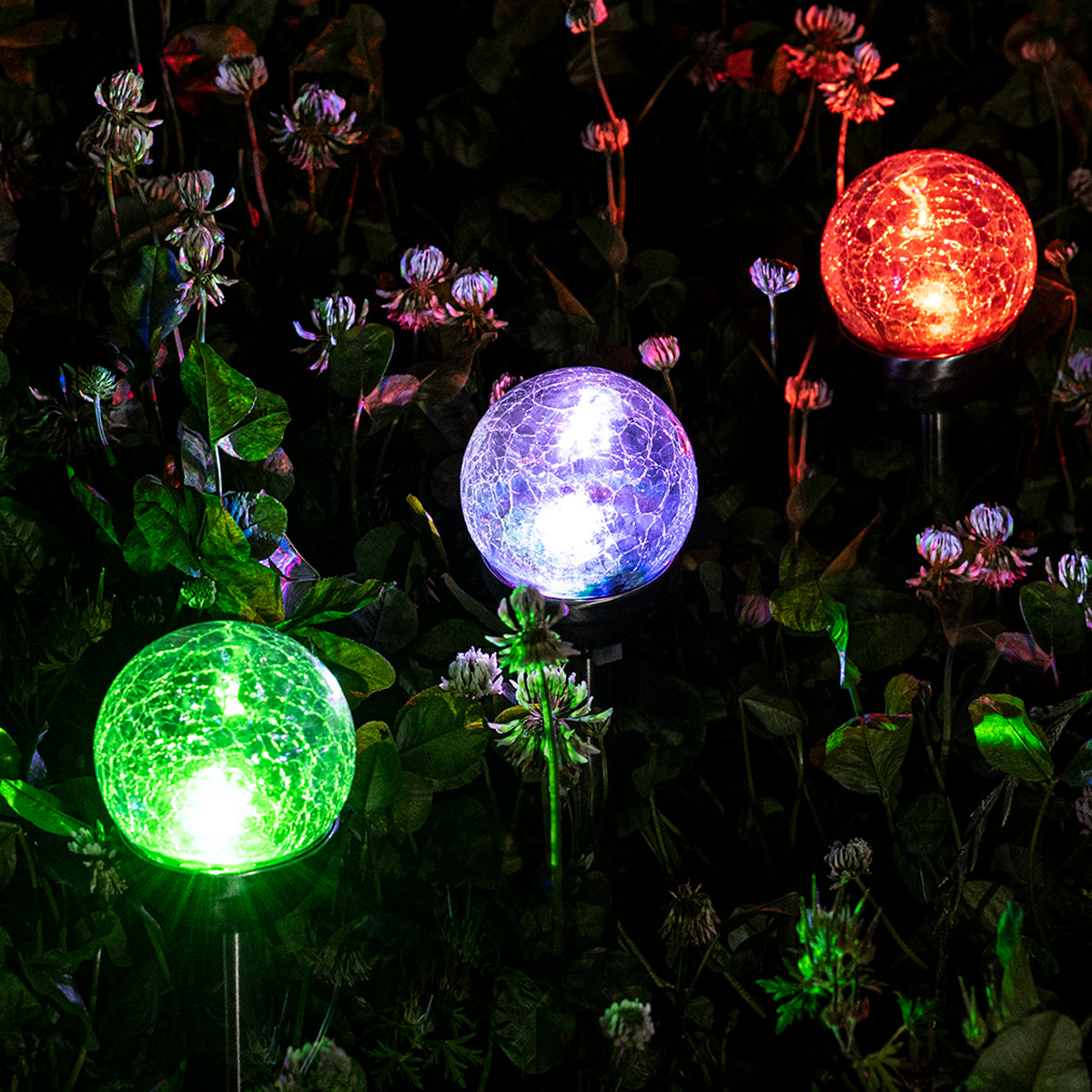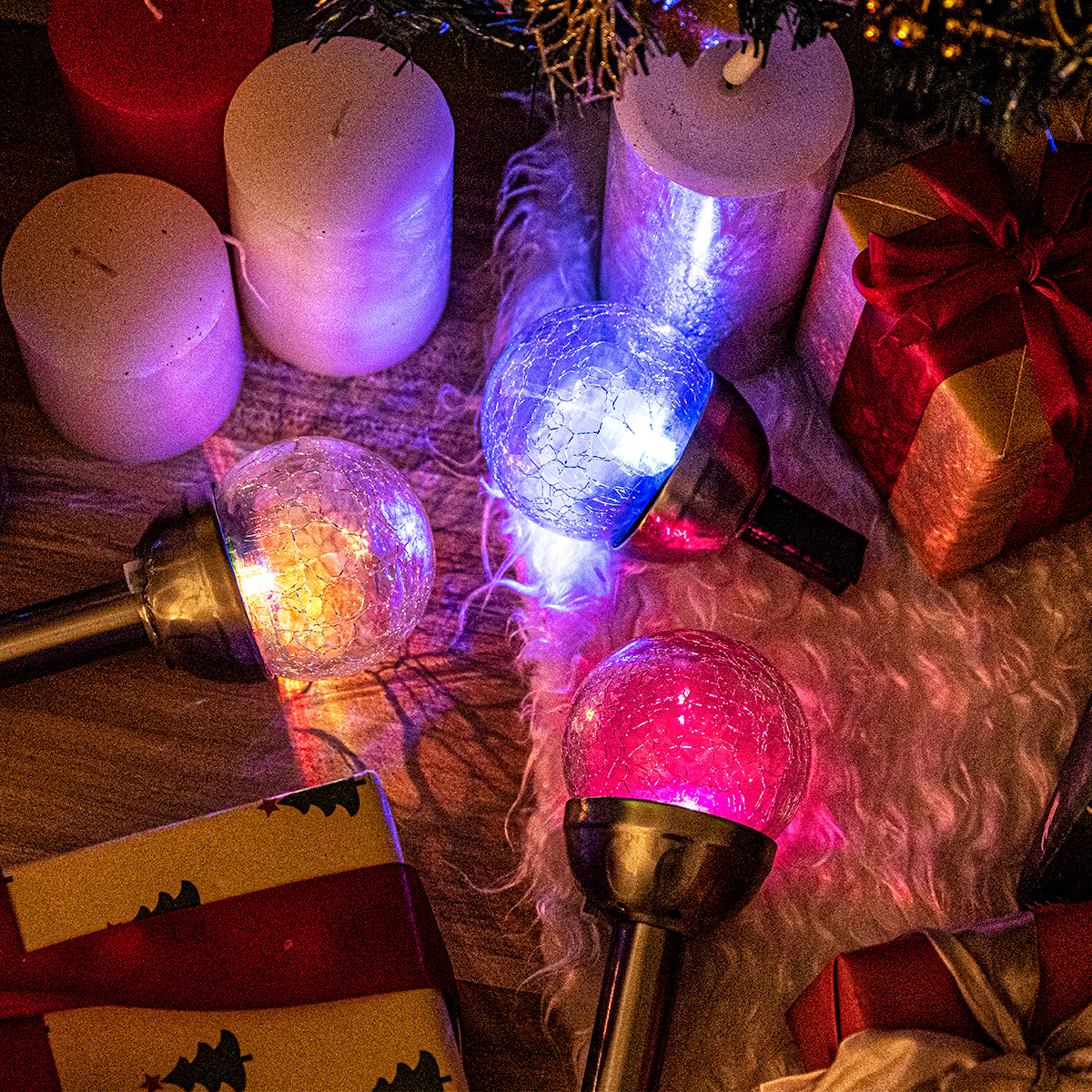 Colorful Solar Crackle Glass Ball Lights Set (3&6 Pack)