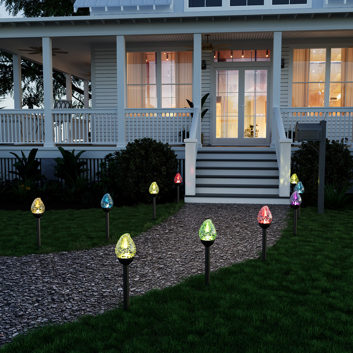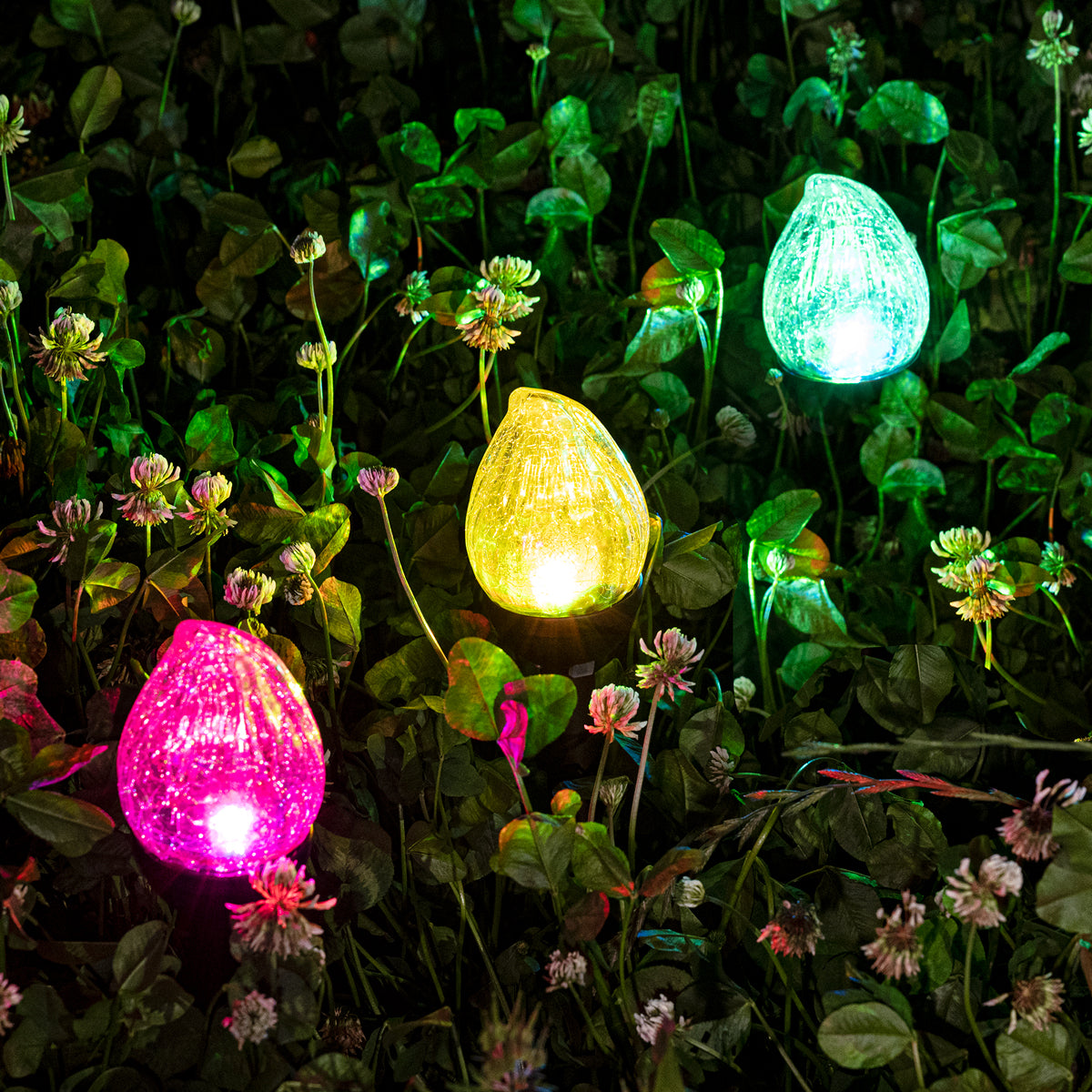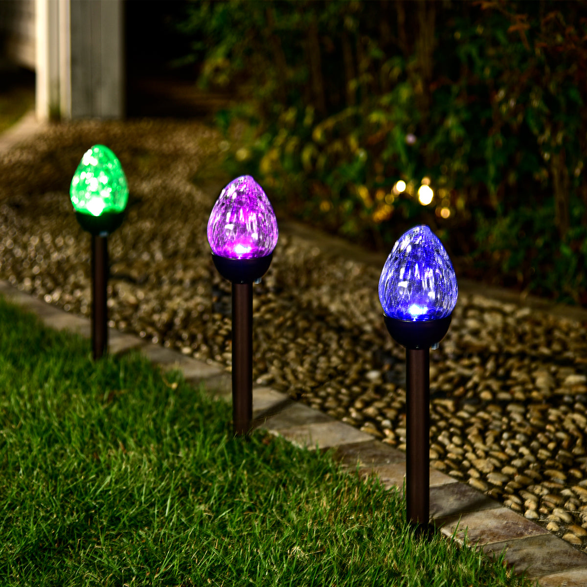 Colorful Solar Crackle Glass Flame Lights Set (3 Pack)