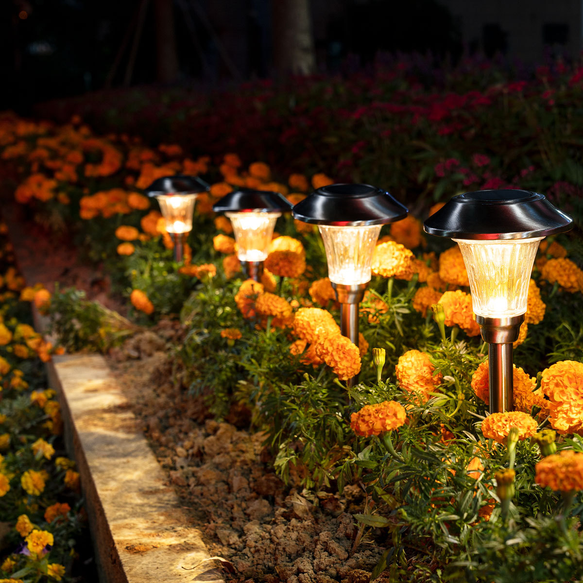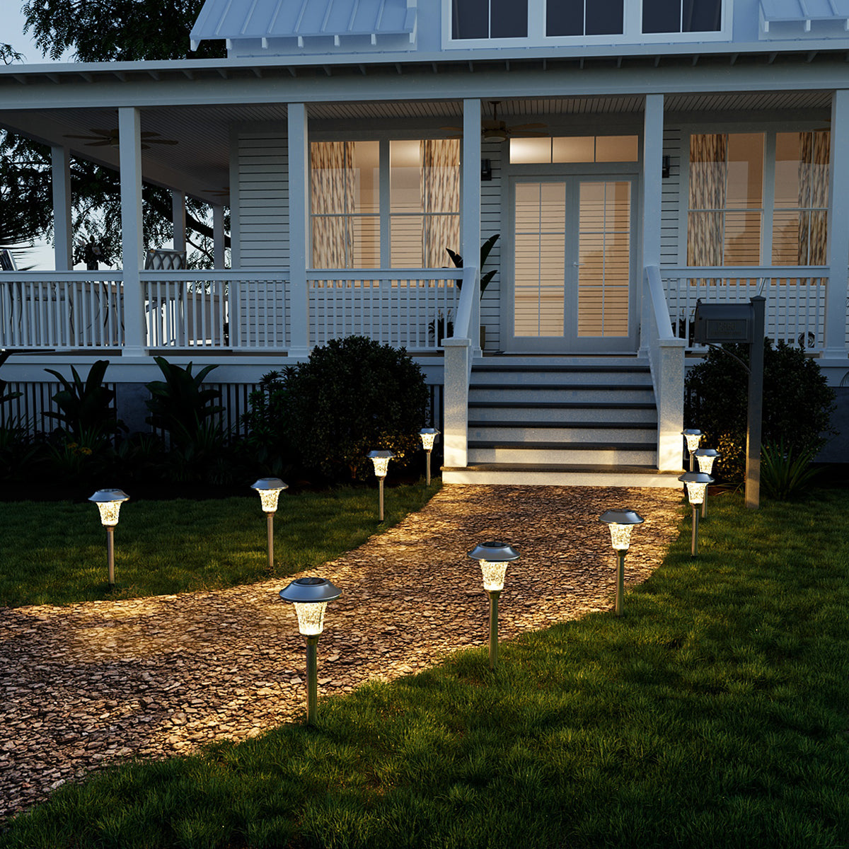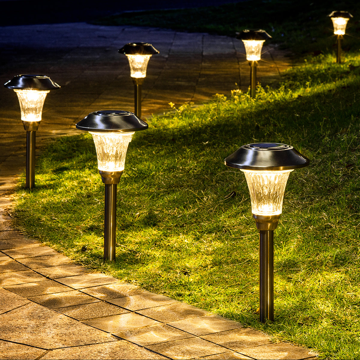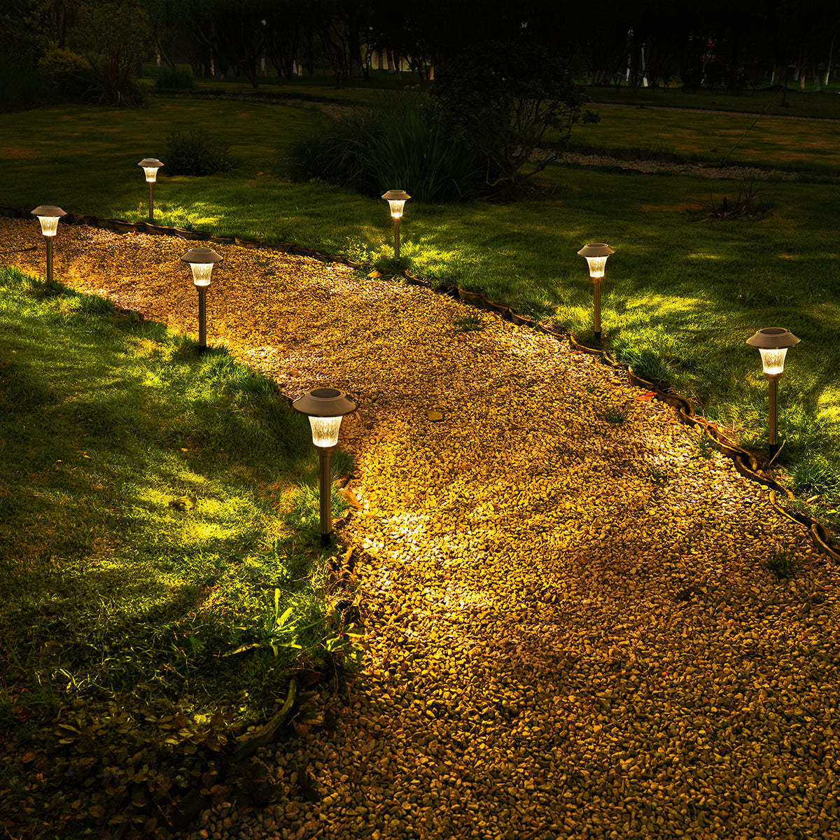 Hammered Stainless Steel Solar Yard Lights Set (8 Pack)